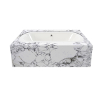 The ‘Blue Bathroom’ from the ‘Lady Caroline Coote Room’ is smaller but makes no compromise. The Baby Ness bath fits the room perfectly, and has been built into a bespoke marble and wood surround. It is filled by a Classic Bath Mixer or the guests may choose to wash in the two Morie undermounted basins filled by Classic Mull Head Basin Mixers.