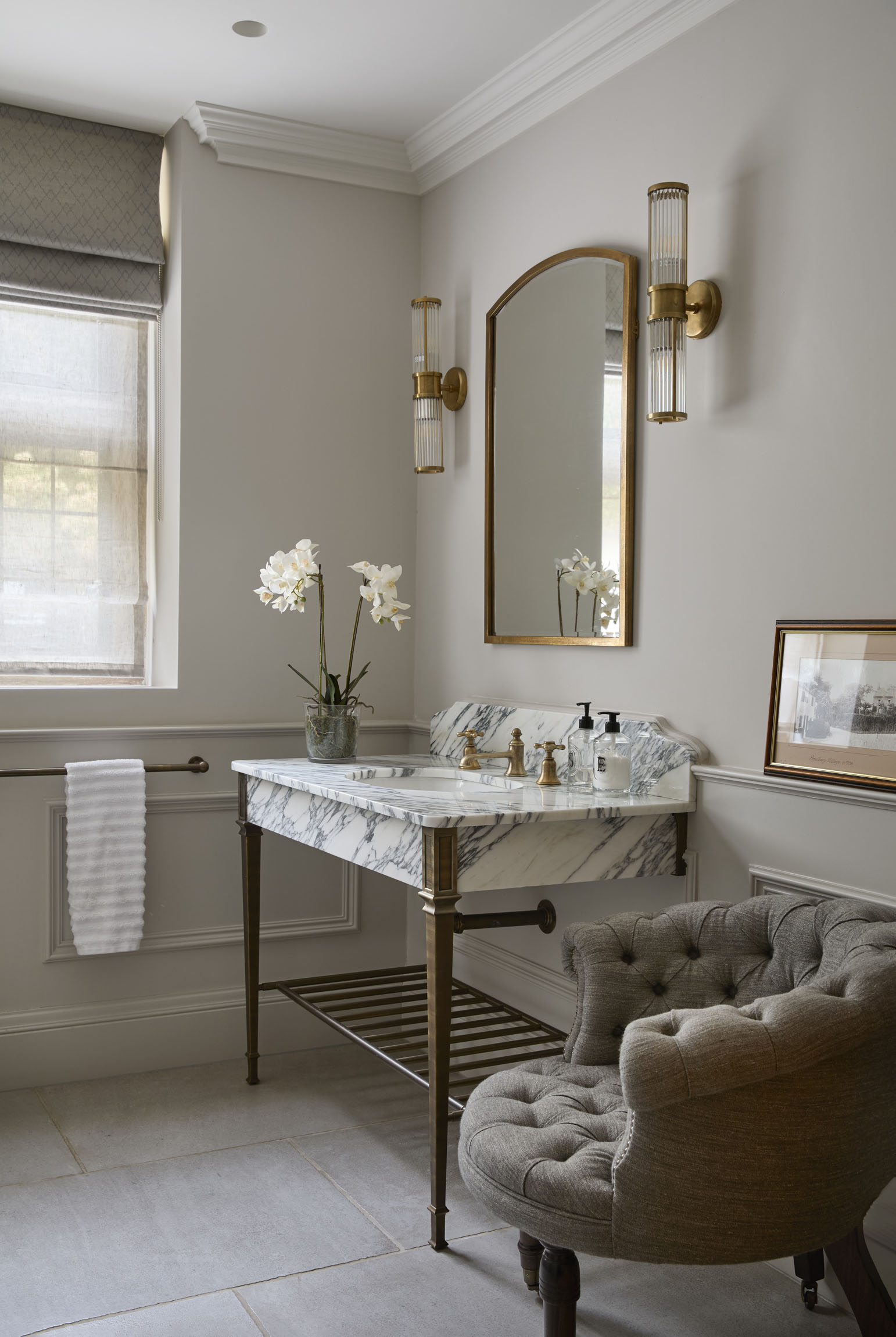 The single Thames vanity basin suite has been designed with Art Deco inspiration and features exquisite marble panelling. Featuring a shelf for additional storage, the Thames is both a beautiful and practical bathroom vanity.