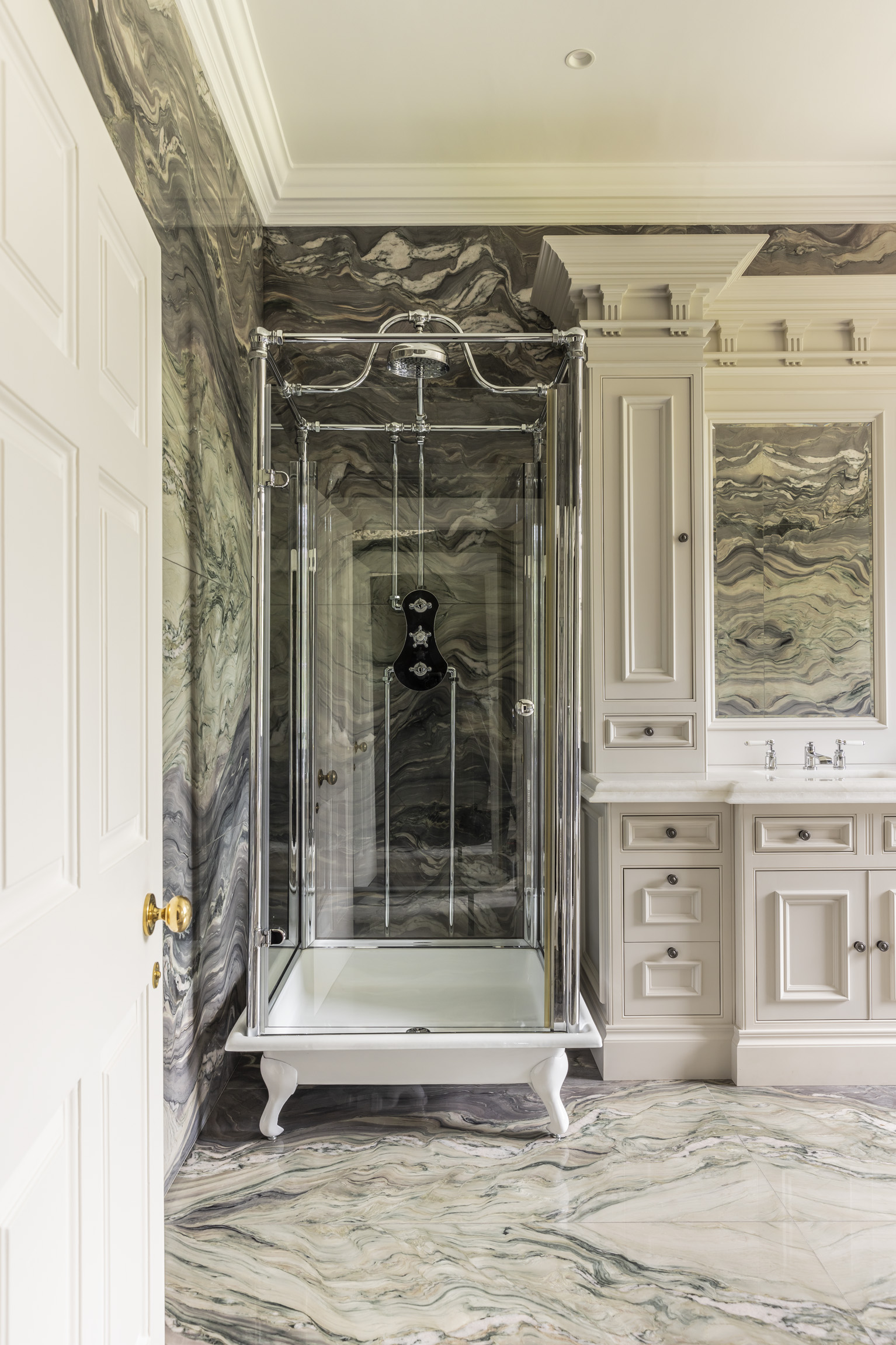 A complete glass-enclosed shower unit, which can stand magnificently in the middle of your bathroom, or even in your bedroom. The Spittal shower has a classic 200mm (8”) shower head and hand shower attachment, providing you with a blissful all-over drenching. The cast iron shower tray comes in various finishes, including primed, painted in a colour of your choice or polished. The shower is completely freestanding, but comes with a soap dish holder fitted in the glass for shower products.