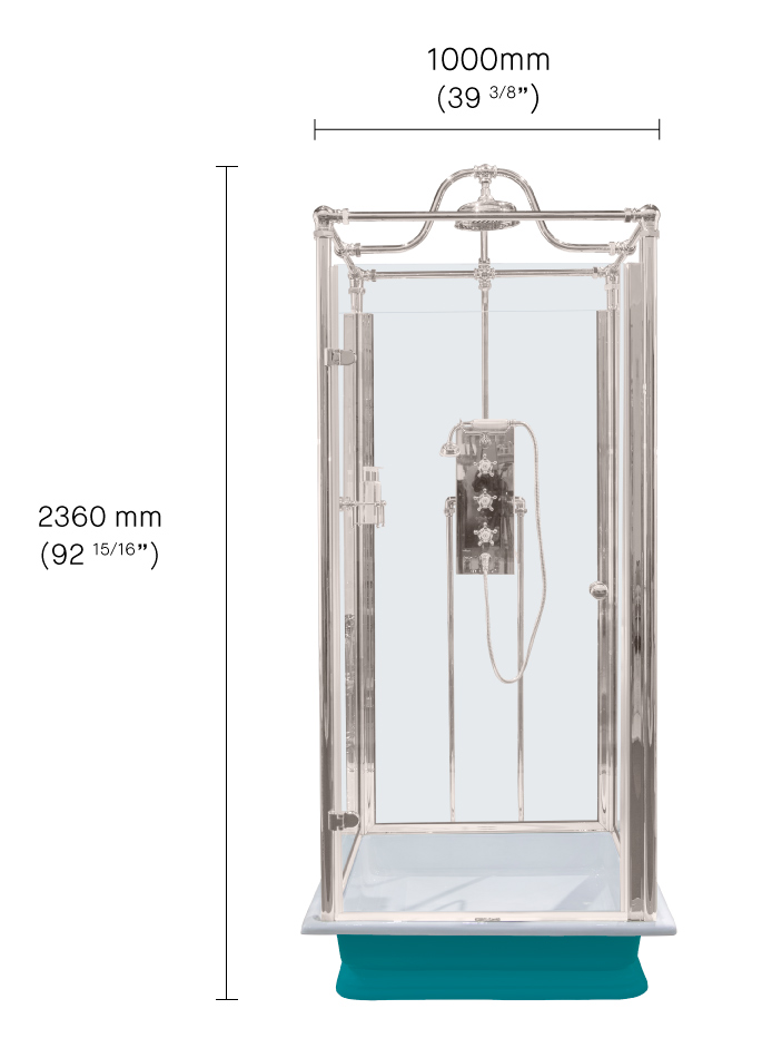 The Test freestanding shower is an inspired re-design of our classic Spittal freestanding shower, featuring an elegantly curved skirt that perfectly matches the curvature of our signature baths. A complete glass-enclosed shower unit, which can stand magnificently in the middle of your bathroom, or even in your bedroom. The Test shower has a classic 200mm (8”) shower head and hand shower built-in, providing you with a blissful all-over drenching.