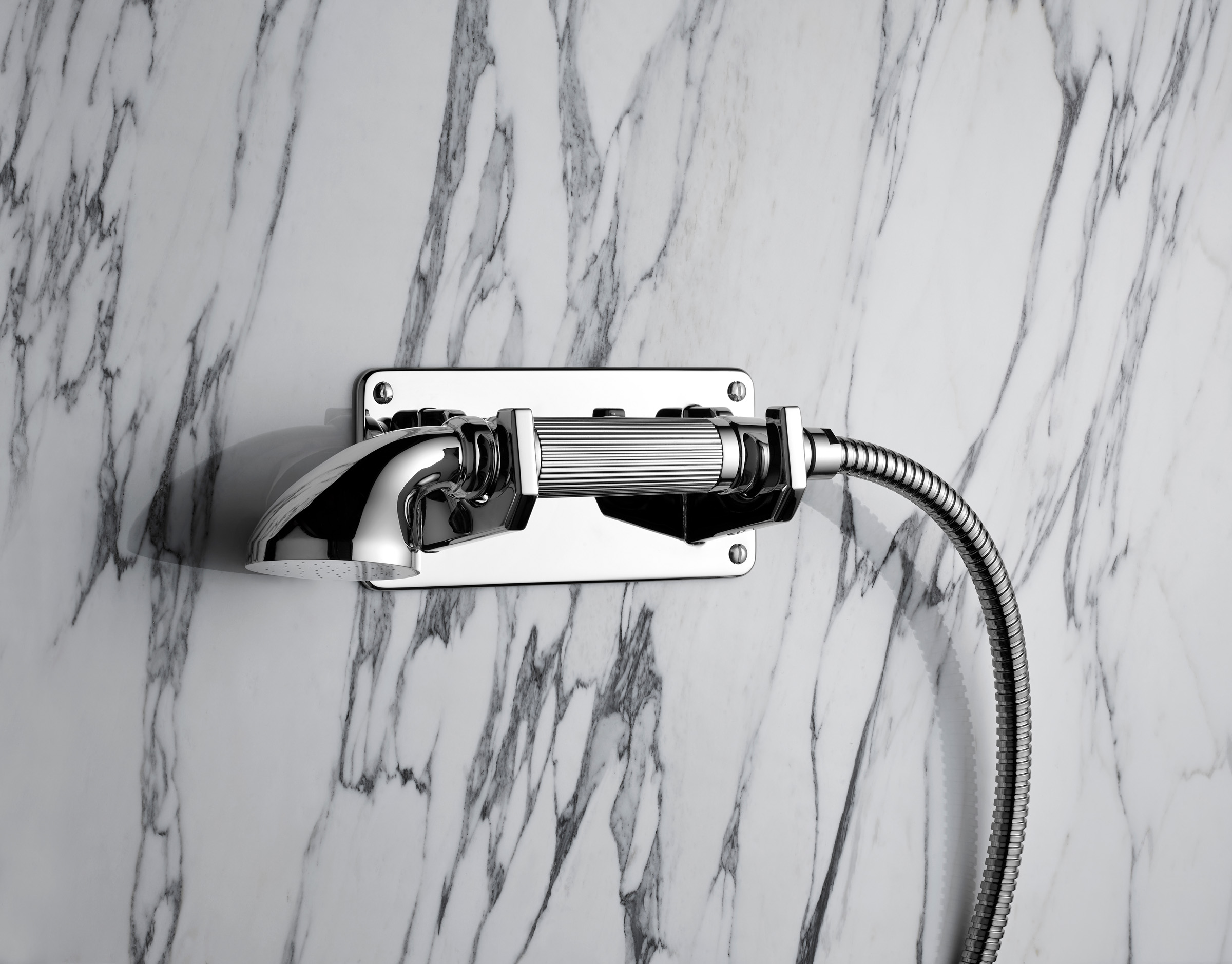 The Hudson Hand Shower & Horizontal Bracket was designed in collaboration with Pembrooke & Ives. It reflects the collection’s balance of crisp geometry and softened detailing. The architectural horizontal bracket introduces a strong, structured profile while providing a clean, considered way to house the hand shower.