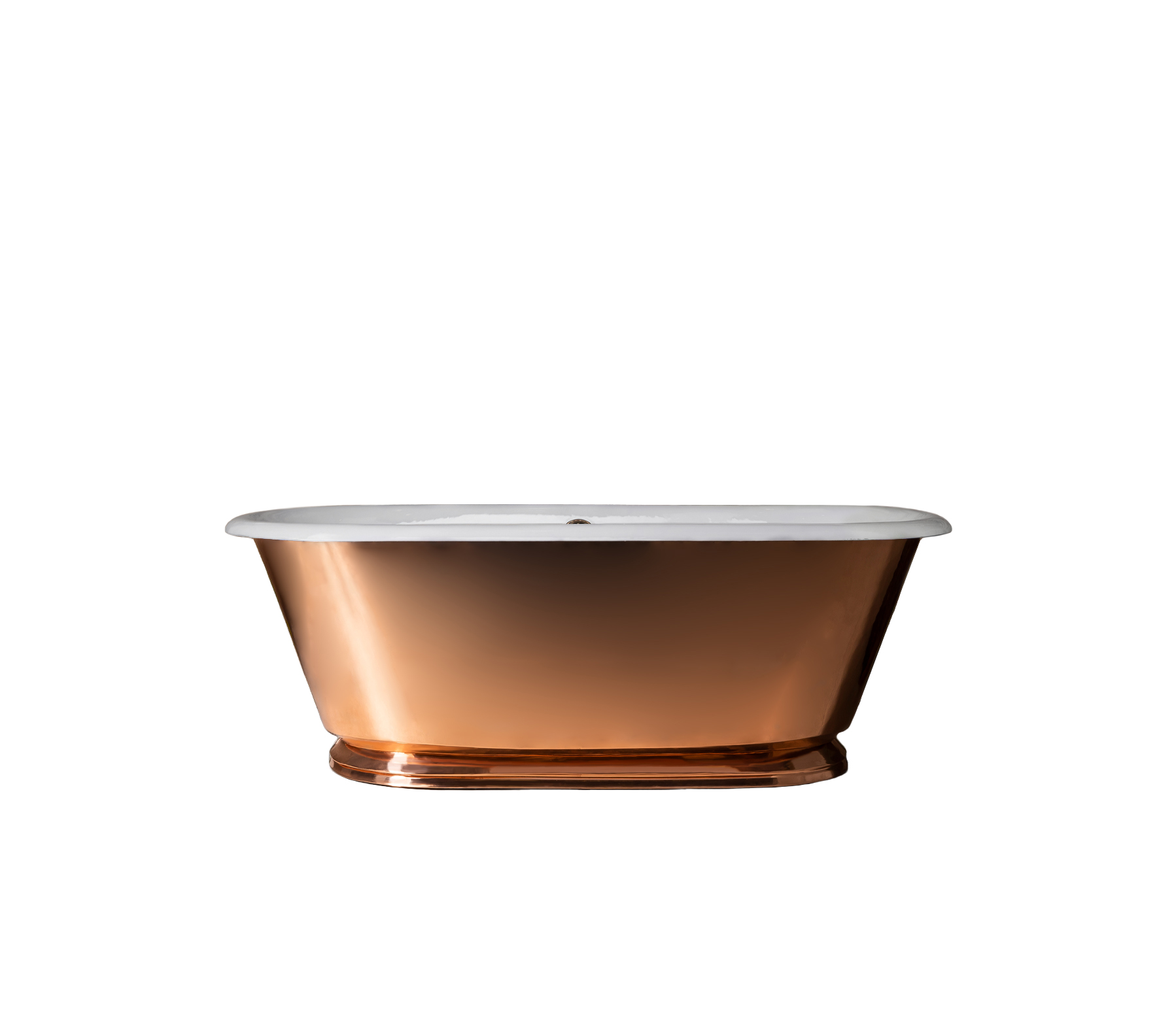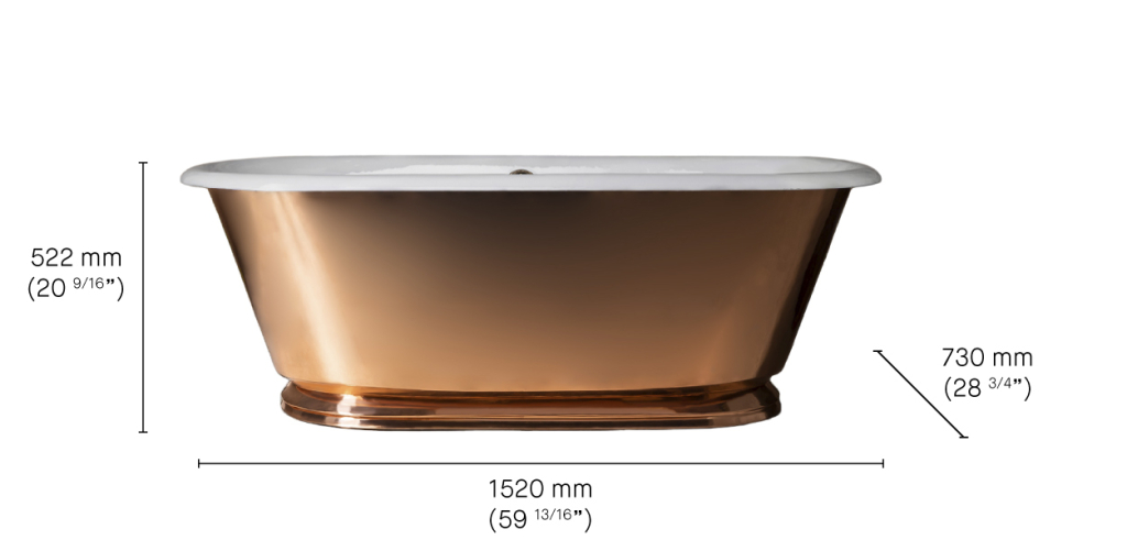 The Polished Copper Tweed Cast Iron Skirted Bath Tub is the smallest brass-clad bath in Drummonds’ collection. Cast in solid iron and hand-enamelled, it is finished with a polished copper exterior. Its reflective surface catches and softly echoes the surrounding space, bringing depth and movement while retaining the strength and durability of cast iron.