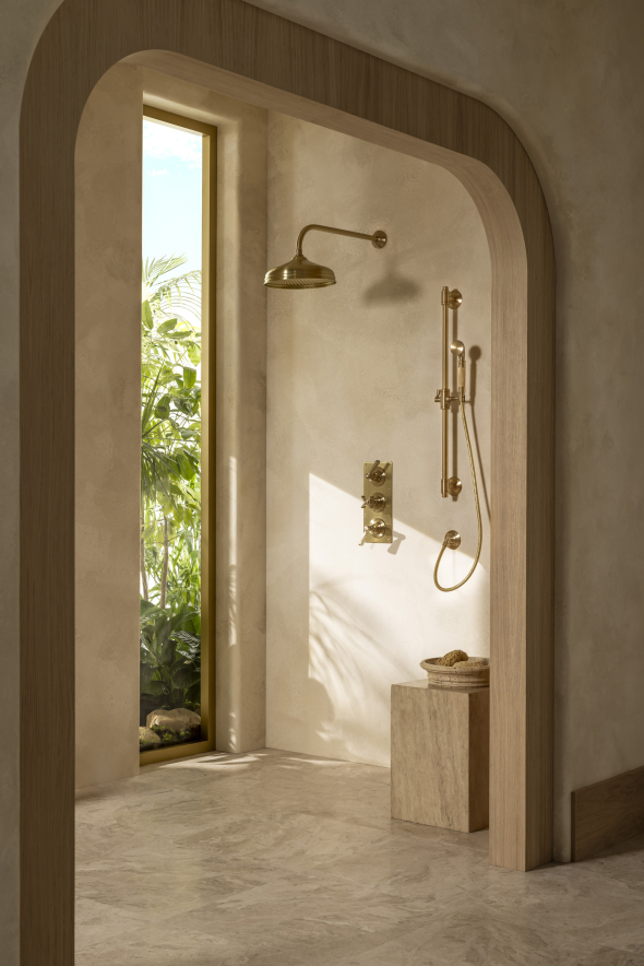 The cross-head in particular is conceived as a sculptural focal point. Confident and architectural, it is grounded by the reassuring solidity that has long defined Drummonds brassware. In contrast, the spout introduces a gentle curvature, creating a measured counterpoint that tempers precision with fluidity.