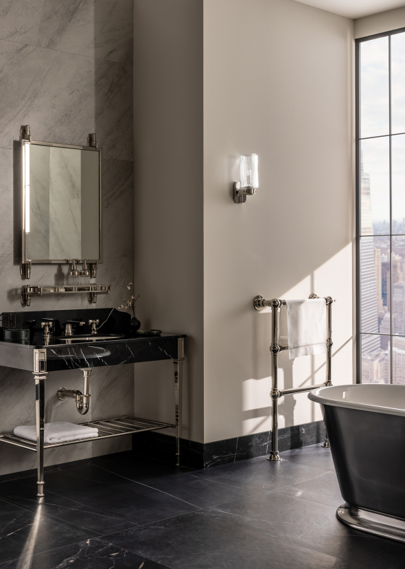 Developed over several years, the partnership began shortly after Drummonds opened its New York showroom, when Creative Director James Lentaigne met Andrew Sheinman, Founder of Pembrooke & Ives. What followed was an ongoing dialogue rooted in a mutual fascination for the art and engineering of plumbing – its weight, tactility and architectural presence within a room.